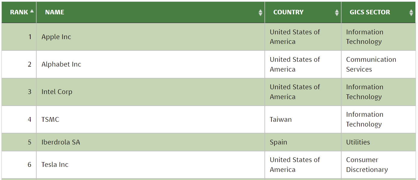The “Carbon Clean 200?” statistics rest mainly on the latest data in Corporate Knights’ Clean Revenue database. The selected companies are ranked according to their green revenues (in USD) earned from clean economy themes, including energy efficiency, green energy, electric vehicles, in the latest fiscal year. In 2022, 16 mainland Chinese companies, from mainly the photovoltaic, wind power, new energy vehicle and power industries, made the list. Companies from other parts of the world in the List included Apple, Alphabet, Intel and TSMC.