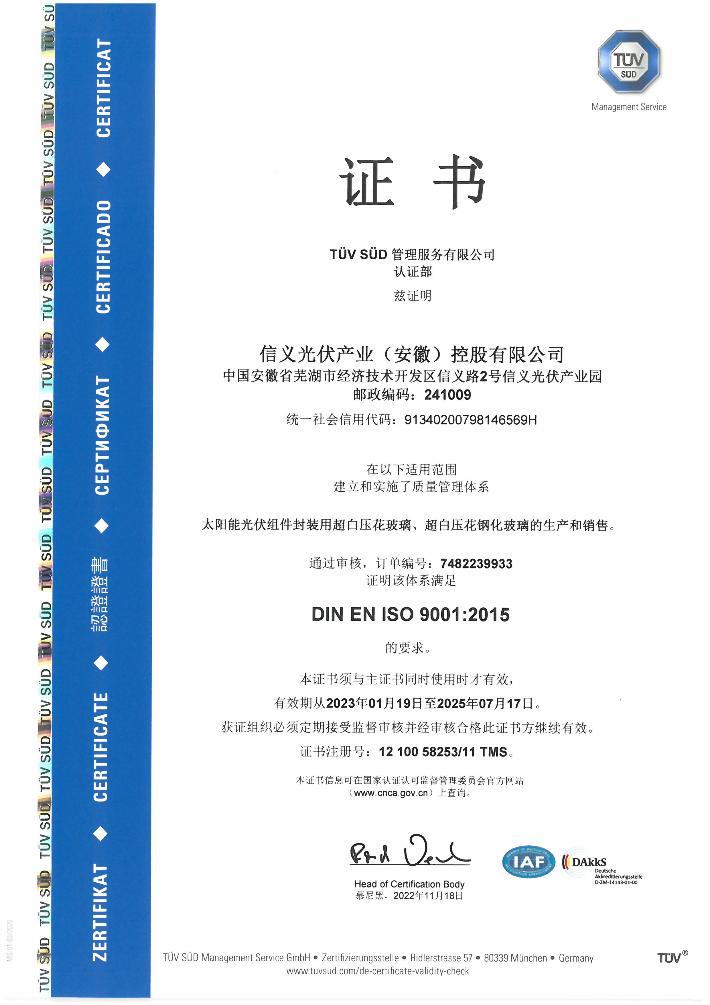 信義光能控股有限公司是全球領先的太陽能光伏玻璃製造商,公司專業(yè)從事太陽能光伏玻璃的研發(fā)、製造、銷售和售後服務,為全球主要的國內(nèi)外太陽能組件廠商提供太陽能光伏玻璃產(chǎn)品。信義光能於2013年12月12日在香港聯(lián)交所主板上市,股票代碼:00968.HK。2019年5月28日,信義能源(股票代碼:03868.HK)從信義光能分拆上市,截至2025年12月31日已累計從母公司收購4,121MW大型地面電站,由其負責獨立運營管理。